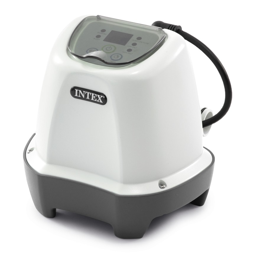 Хлоргенератор Intex использует обычную поваренную соль, которую предварительно растворяют в бассейне. Для работы устройства нужна соль из расчёта 3 кг на 1 кубический литр воды. Можно использовать как рассыпную соль, так и таблетированную, которую выпускают специально для бассейнов. Соль засыпается в бассейн или предварительно растворяется в отдельной емкости.